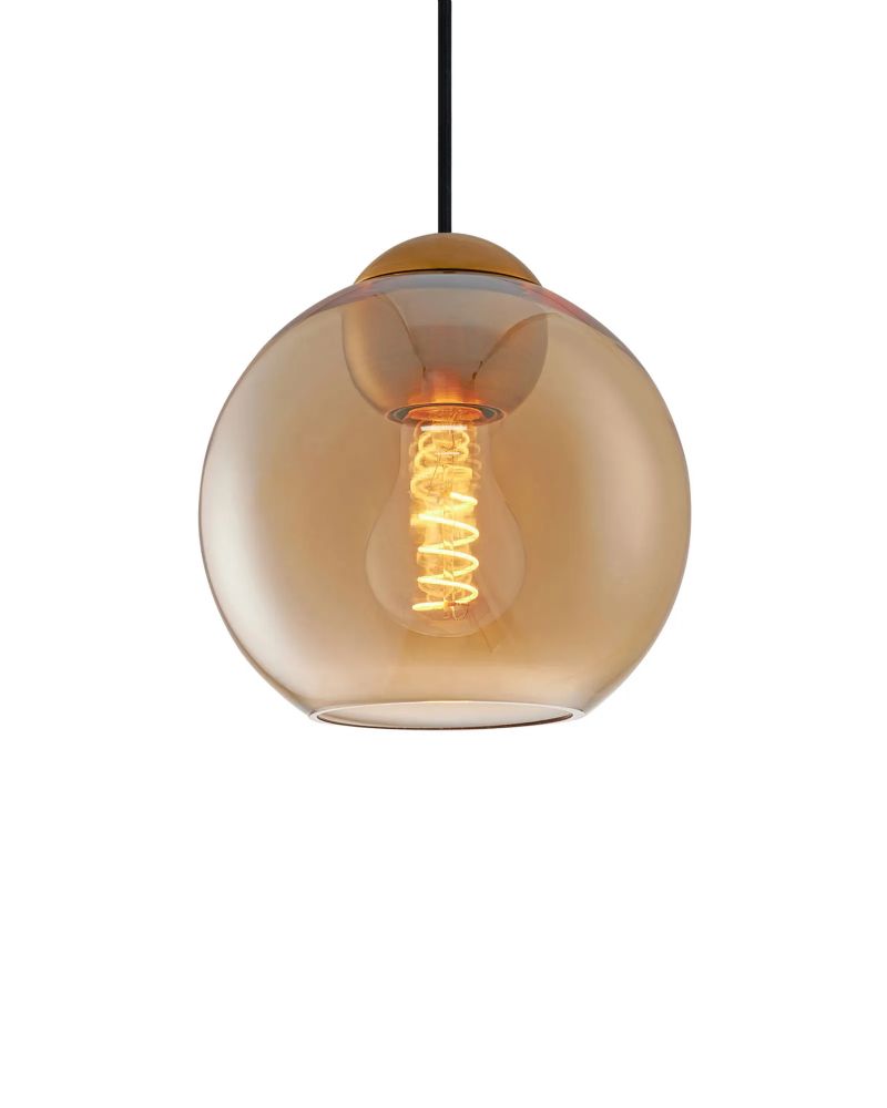 glasfarver. Fatningen er enten i messing, krom eller sort – alt efter hvilken glasfarve du vælger. Bubbles Pendel Ø18 Amber tager sig flot ud både alene og i serier af flere. Lampen er velegnet f.eks. i serier over køkkenbordet, og alene eller i par over spisebordet.
