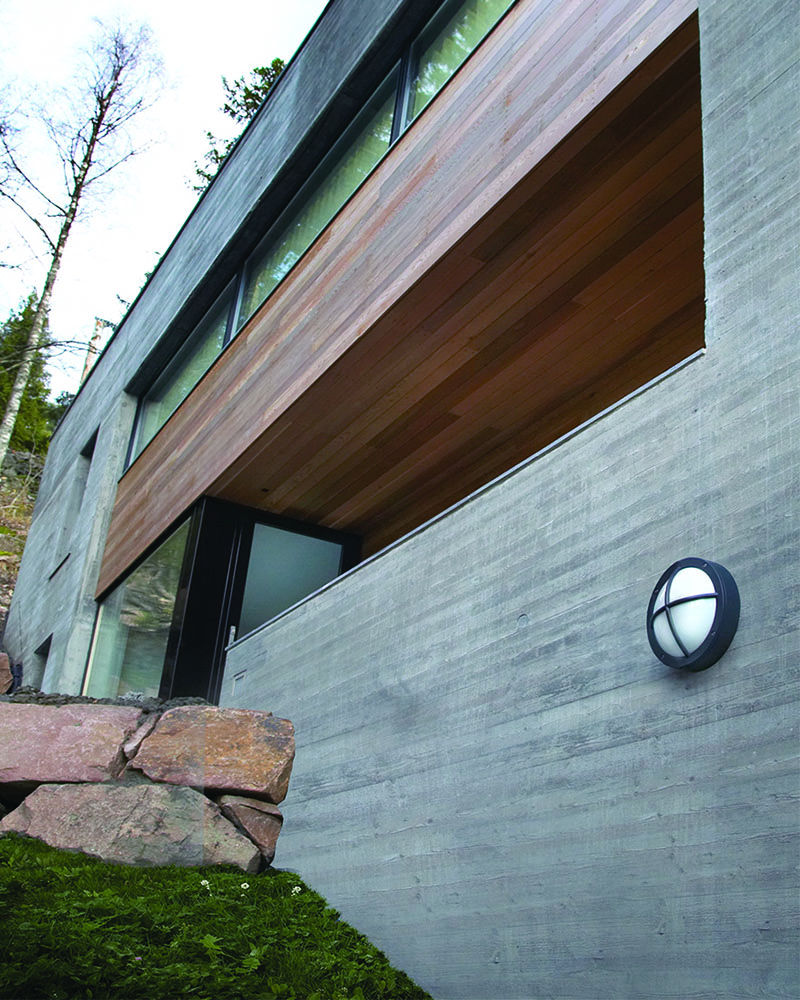 Rondane lampen er støbt i aluminium og med glas i opalhvidt polykarbonat. Der er indbygget LED-modul.